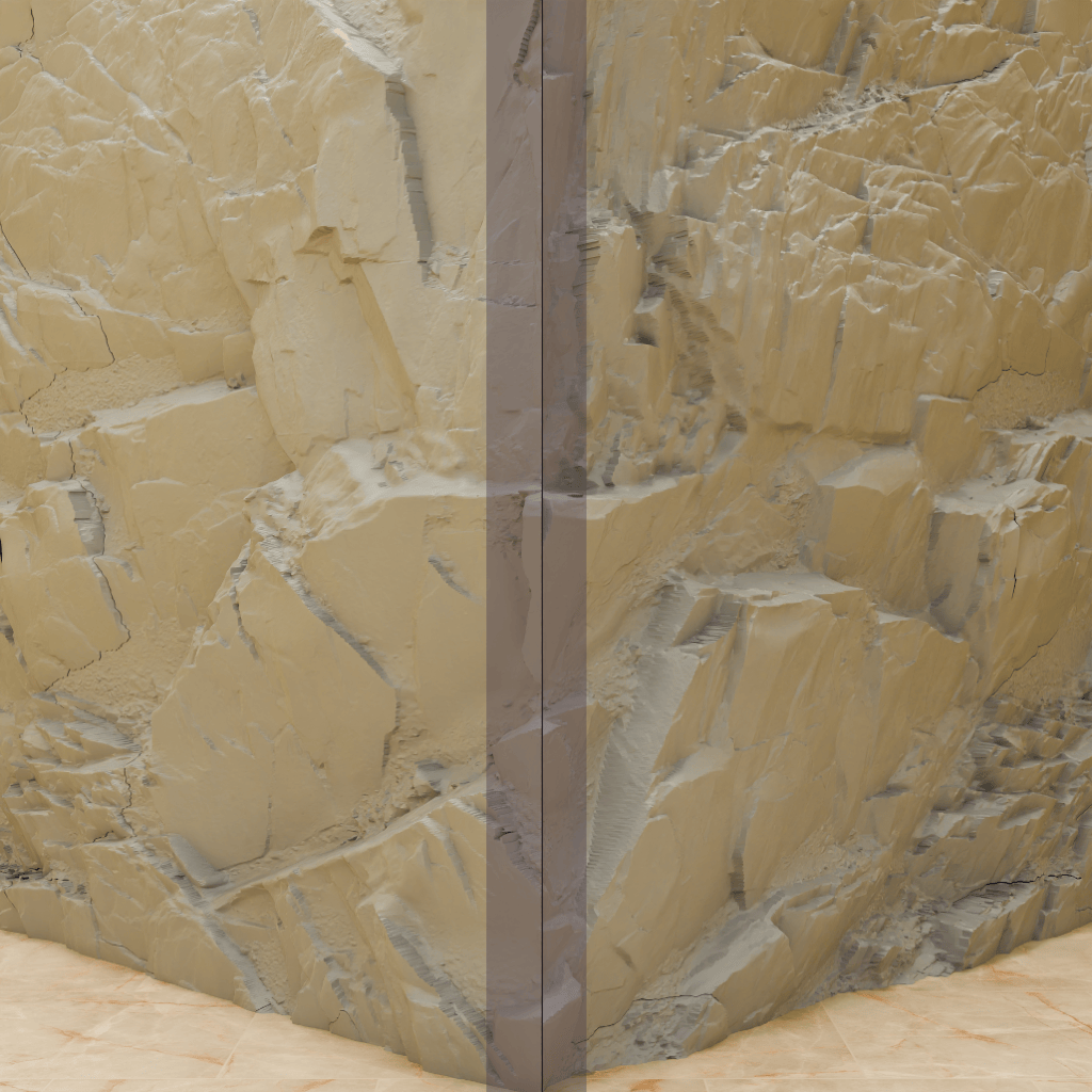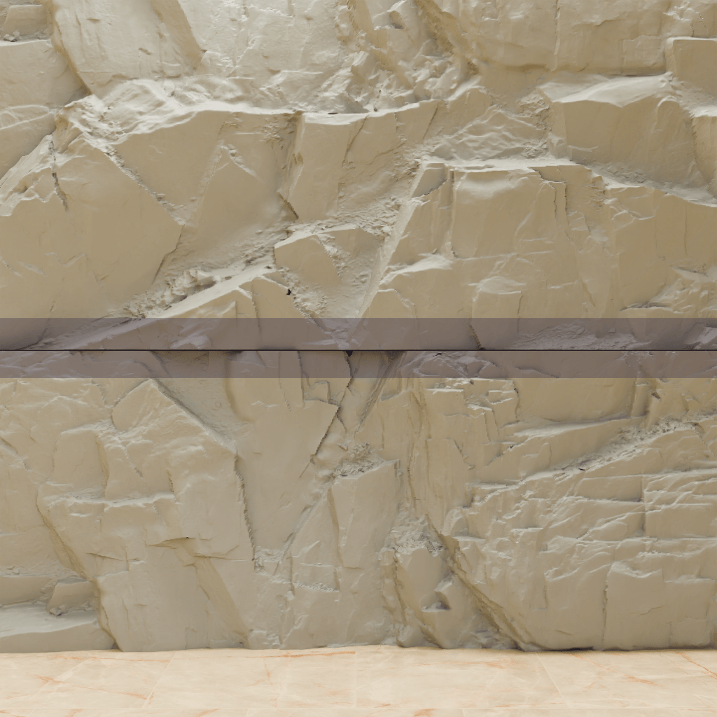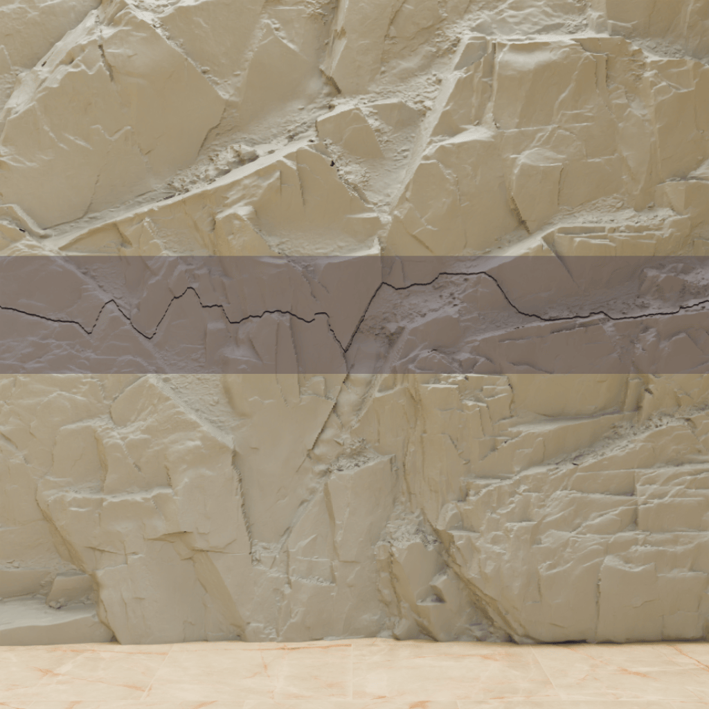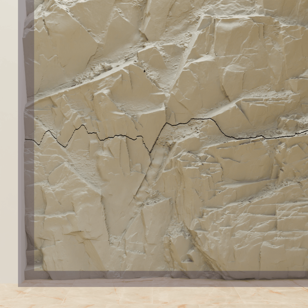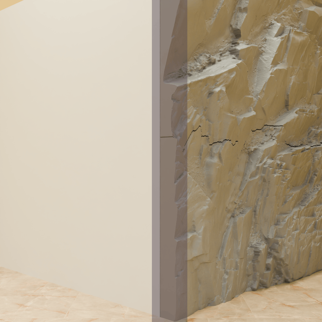 Pour une pose à nu, les chants visibles après coupe peuvent rester plats ou être sculptés pour donner l’impression que la pierre s’enfonce dans le mur, puis être recouverts de résine.